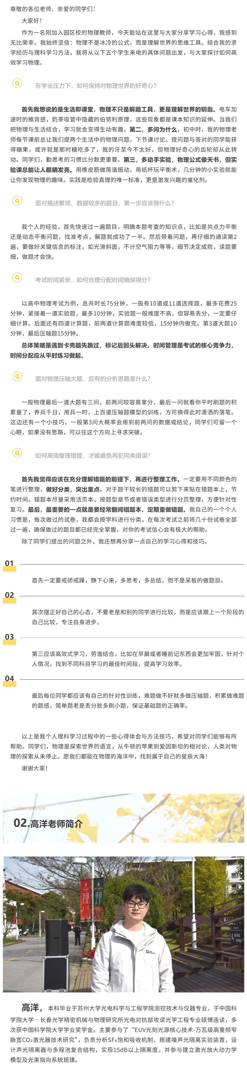 高老师没有端着“科研大牛”的架子,而是用一连串来自生活的“小物理”和自己的学习故事,和大家聊了聊:怎么保持好奇心?怎么破解长题?压轴题怎么下手?期中考试前后怎么复盘更有效?